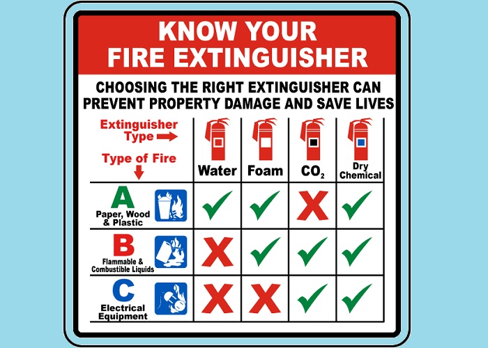 Fires are classified according to the type of fire that is burning. Basically what type of material is on fire, i.e. paper, grease, electrical equipment etc.
